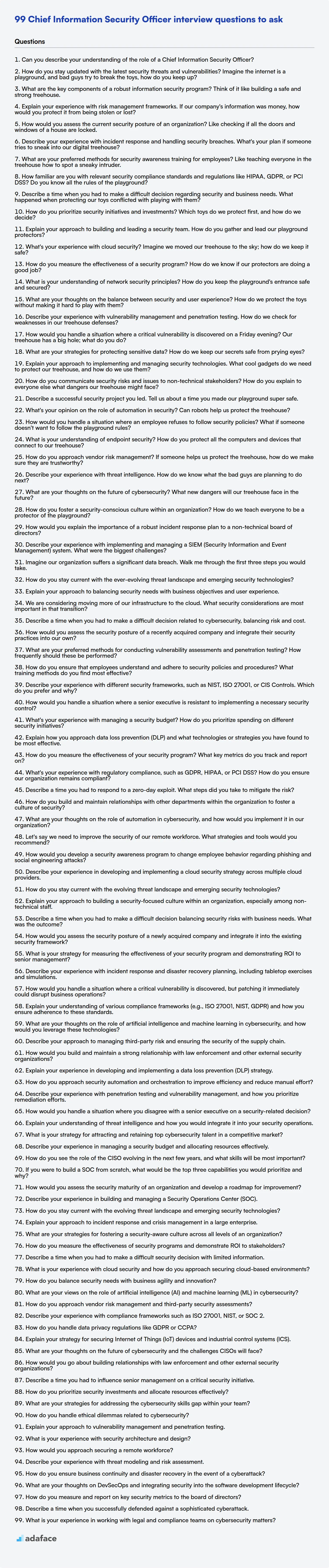 Interview time is precious, so make every question count. Carefully select a limited set of questions that target the most important skills and attributes for the Chief Information Security Officer role.