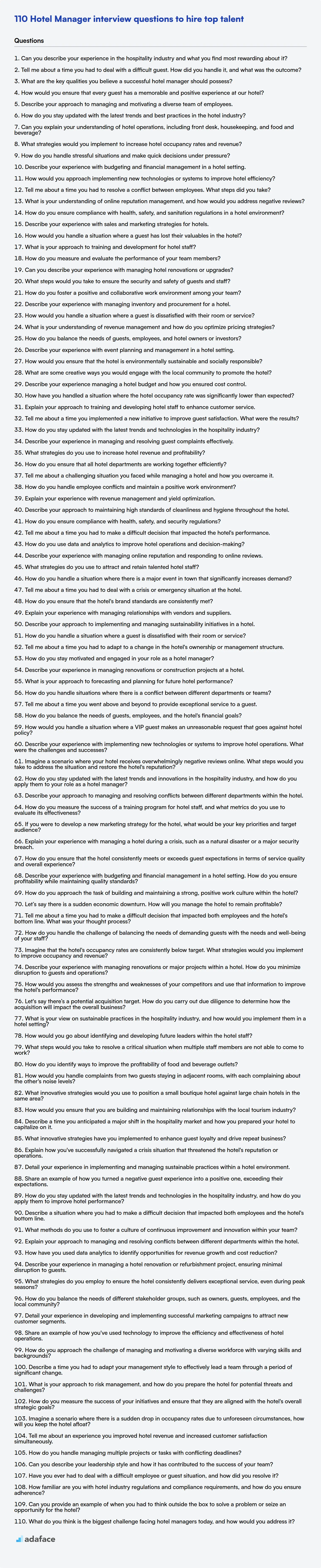 Download Hotel Manager interview questions template in multiple formats