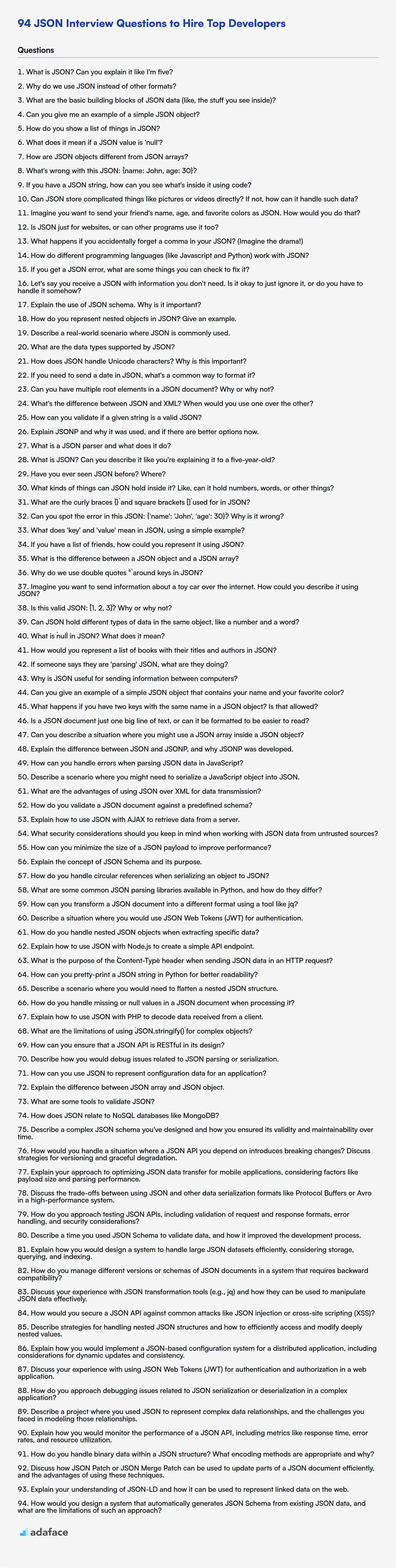 Time is limited during interviews, so selecting the right questions is paramount. By focusing on the most relevant aspects of JSON and its application, you can maximize your understanding of a candidate's capabilities.