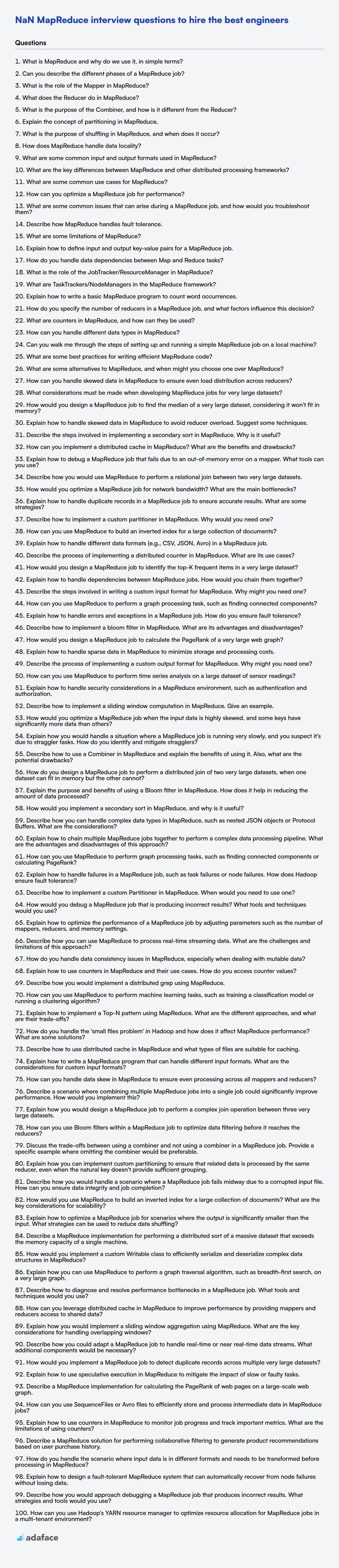 Recruiting candidates with strong MapReduce skills can be tough, as it requires a blend of theoretical knowledge and practical experience. If you're a hiring manager or recruiter, having a well-prepared list of questions is a must for evaluating candidates.