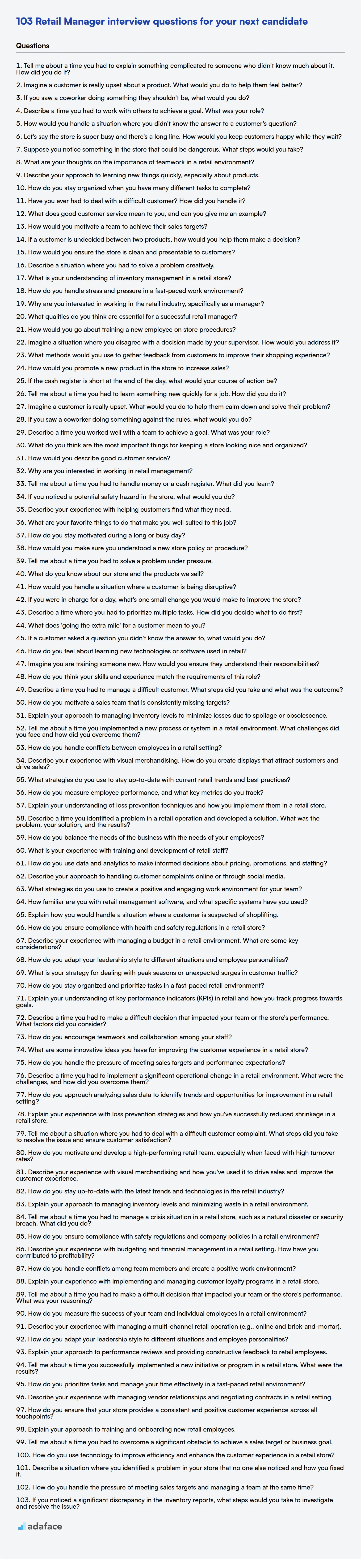 This blog post provides a range of interview questions tailored for different experience levels, from freshers to seasoned professionals, including situational and multiple-choice questions. With these questions, you'll be well-equipped to find a retail manager who is ready to take on any challenge.